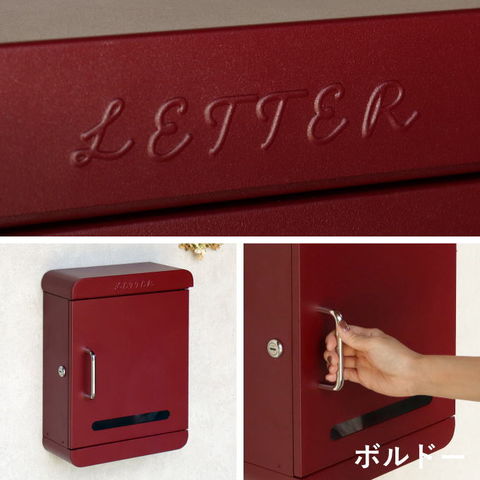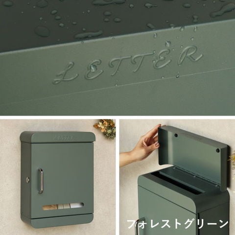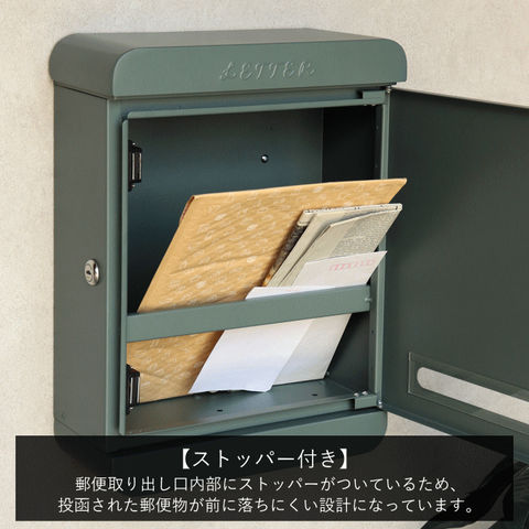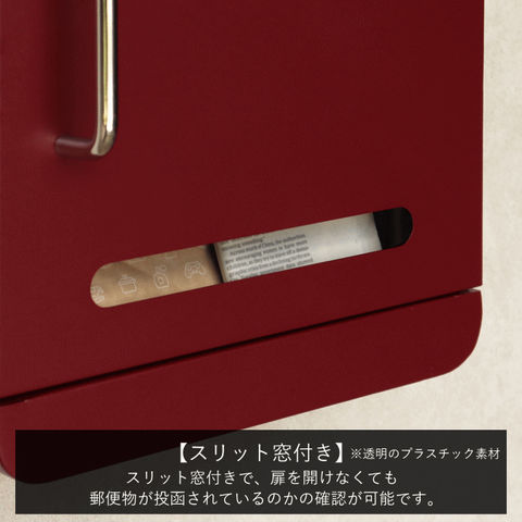 | 【投函可能目安サイズ】 茶封筒角型2号やゆうパケットポスト、ネコポスが投函可能です。 【セキュリティー】 鍵付きなので防犯面に安心です。※スペアキーが1本付属 【スリット窓付き】 正面扉下部にスリット窓が付いているため、扉を開かなくても郵便物が投函されているかの確認が可能です。 【デザイン】 鏡面仕上げのステンレス製の取っ手を使用しており、デザインのアクセントになっております。 郵便取り出し口内部にストッパーが付いているため、投函された郵便物が前に落ちにくい設計になっております。 上蓋にLETTERの文字がエンボス加工で施されております。 天面と底面のサイドは、R加工で仕上げており、かわいい印象に仕上がっております。 【カラー】 カラーは深い赤のボルドーと、落ち着いた緑のフォレストグリーンからお選び頂けます。 【錆びにくい加工】 ガルバナイズド処理を施している為、錆の発生がしにくい仕様となっております。 ※防水加工は施しておりませんので、軒下や屋根がある場所への設置を推奨致します。 |