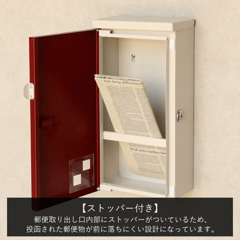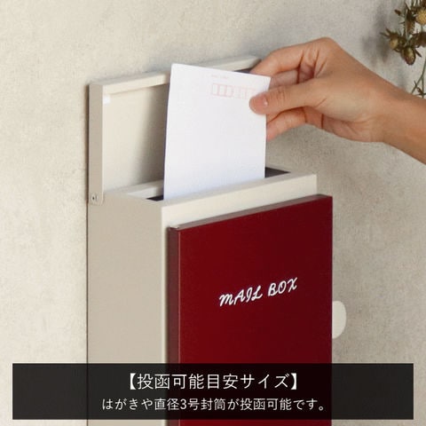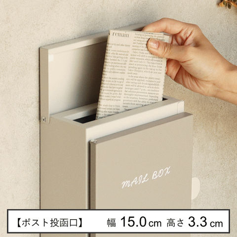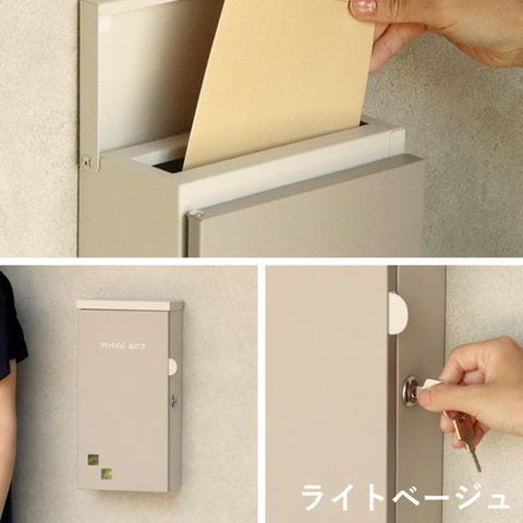 | 【投函可能目安サイズ】 茶封筒角型2号やゆうパケットポスト、ネコポスが投函可能です。 【セキュリティー】 鍵付きなので防犯面に安心です。※スペアキーが1本付属 【スリット窓付き】 向かって右側側面部にスリット窓が付いているため、扉を開かなくても郵便物が投函されているかの確認が可能です。 【デザイン】 鏡面仕上げのステンレス製の取っ手を使用しており、デザインのアクセントになっております。 郵便取り出し口内部にストッパーが付いているため、投函された郵便物が前に落ちにくい設計になっております。 上蓋にLETTERの文字がエンボス加工で施されております。 横長デザインのオリジナル性が強いデザインアイテムとなっております。 【カラー】 カラーは、明るみのあるグリーンのセージグリーンと外壁に調和しやすいクリームの2色からお選び頂けます。 【錆びにくい加工】 ガルバナイズド処理を施している為、錆の発生がしにくい仕様となっております。 ※防水加工は施しておりませんので、軒下や屋根がある場所への設置を推奨致します。 |