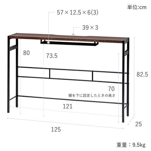 | 幅125×奥行25×高さ82.5cm |