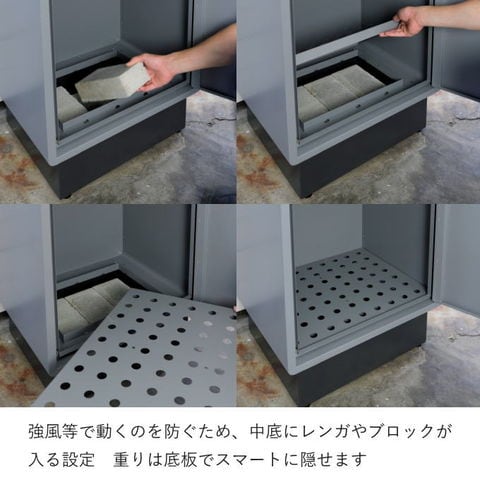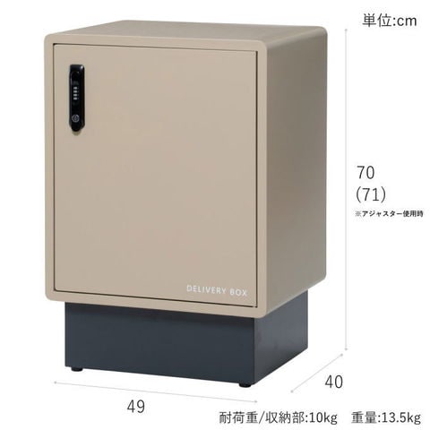 | 屋外物置としても活躍する宅配物を不在時に、荷物を受け取れる大容量宅配ボックス。忙しいあなたや、配達の方にも優しい商品です。 高級感が個性ある玄関を演出する宅配BOXです。 【大容量収納】 有効内寸が約幅42cm、奥行37cm、高さ49cmと非常に広く、120サイズの大きな荷物や同時に複数の荷物の配達が可能な宅配ボックスです。 【セキュリティー】 ダイヤルロックとシリンダー錠(ダイヤル解錠番号が分からなくなった際の緊急用)でドアの開閉が可能です。 【配達マニュアル付き】 キー、キーフック付印鑑ケース、宅配業者用の配達マニュアルが付属しており、お客様で追加でご用意頂くものは特に必要なく、すぐにご使用頂けます。 【デザイン】 底板を外すと重りを入れるスペースがあり、強風などで動いてしまうのを防ぎます。 脚部に地面固定用のアンカーボルト穴があり、地面と商品を固定することも可能です。 |
