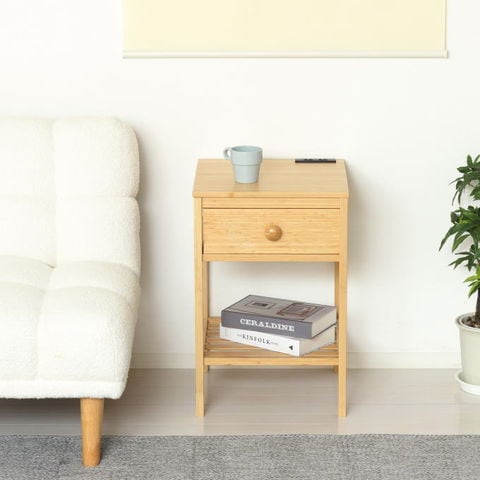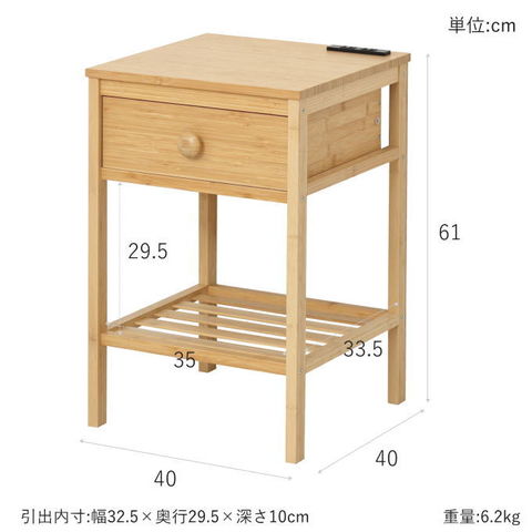 | 環境にやさしくサステナブルな竹材を使用、お洒落な風合いが魅力です。 成長が早く生命力が強い「竹材」は耐久性に優れ、再利用にも適したSDGsを実現する植物です。 1500W 2口コンセント付。 引出しはA4書類が収納できます。 引き出しやすい大きめの取手付です。 小物を置ける棚付きです。 既存のインテリアを邪魔しないシンプルなデザインです。 軽いので女性の方でも簡単に持ち運び可能です。 お部屋に馴染むナチュラル色です。 玄関、リビング、寝室など、置く場所を選ばずお使いいただけます。 |