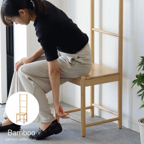 品番:K01-01-23559※品名:ラダーラック 竹製 ラダーチェア 掛けられるスツール ラダーシェルフ ラダーハンガー 玄関 リビング ランドリー サニタリー タオル掛け ハンガー 椅子 イス チェア はしご 梯子 背もたれ 玄関スツール 北欧 木製 おしゃれ