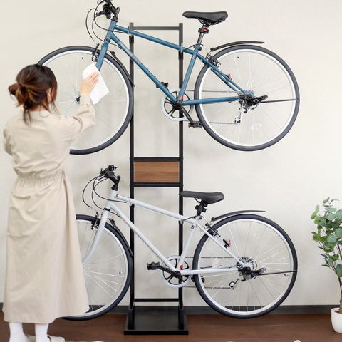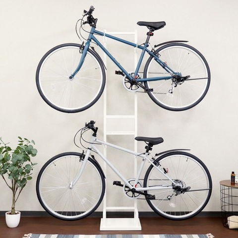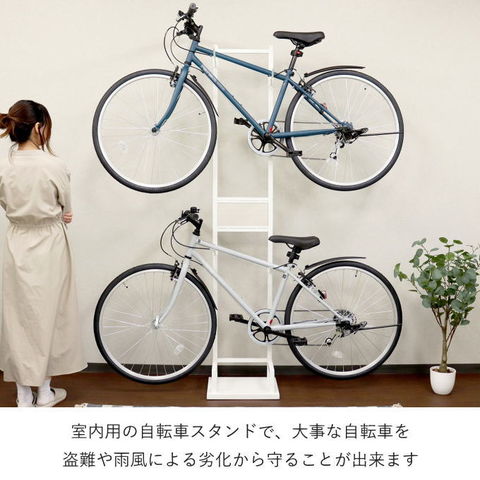 品番:M02-3-160-BCD-006※品名:自転車スタンド サイクルラック 自転車 スタンド 倒れない 室内 2台 上下 縦置き ロードバイク クロスバイク 2輪 収納 家 一人暮らし マンション 省スペース 玄関 リビング 屋内 収納 2段 黒 白 おしゃれ シンプル コンパクト