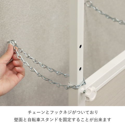 | ・室内保管用:室内用の自転車スタンドで、大事な自転車を盗難や雨風による劣化から守ることが出来ます。 ・室内保管用:お気に入りの自転車を室内で保管することが出来、室内空間の装飾となります。 ・高さ調整可:6段階で自転車スタンドの高さ調整が可能となります。(2台分ともに) ・重石入り台座:台座部には重石が入っており、自転車をひっかけても安定感のある台座となります。 ・チェーン付:チェーンとフックネジがついており、壁面と自転車スタンドを固定することが出来ます。 ・保護チューブ付:自転車をかけるフック部は、保護チューブ付で大事な自転車を傷つけない仕様となります。 ・木目プレート:本体部にワンポイントで木目プレートを使用しており、デザインのアクセントとなっております。 ・2台用:2台用タイプなので、お気に入りの自転車を2台分、ディスプレイできます。下段に自転車を、上段をハンガーラックとしてもお使いいただけます。 ・シンプルデザイン:スチールと木目プレートのみを使用したシンプルでお部屋に馴染みやすいデザインとなっております。 ・粉体塗装:スチール素材は粉体塗装で仕上げており、耐久性、防錆性に優れております。 ・2色展開:ブラックの鉄とブラウン木目のタイプと、ホワイトの鉄とホワイト木目のタイプの2色よりお選びいただけます。 |