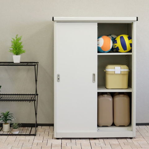 | ・ツートンカラー:ツートンカラーで仕上げており、存在感のあるデザインの物置になります。 ・ハイタイプ:縦長のハイタイプになり、可動棚の調整で縦長の物の収納に適しております。収納力は十分に備えており、多用途な収納に適しております。 ・可動棚板:棚板は可動式で、2cmごとに高さ調整が可能となります(40段階調整)。 ・スライド扉:鍵はスライドレールタイプで、スムーズに扉の開閉が可能です。 ・鍵付き:施錠、解錠状態が一目で確認が出来、鍵付きタイプで安心にご利用いただけます。 ・コーナーキャップ付き:天板の左右の前側2箇所には、コーナーキャップが付いており、安全面に配慮されております。 ・水抜き穴:レールの隅には水抜き穴を設けており、水や小さなゴミの侵入時には水抜き穴より地面に落とすことが出来ます。 ・転倒防止設計:天面左右2箇所にはワイヤー通し穴パーツが、左右底面部にはアンカー固定用パーツが付属しており、転倒防止対策が施されています。 ・2色展開:商品はグレーを基調としたツートンカラーと、ホワイトを基調としたツートンカラーの2色からお選びいただけます。 ・錆びにくい加工:ガルバナイズド処理を施しているため、錆びにくくなっております。 ※屋外での使用の商品の為、軽微な傷や汚れは、返品・交換の対象外となります。 |