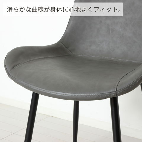 テーブルやデスクに合わせやすいスタイリッシュデザイン。 異素材の組み合わせがモダンで、滑らかな曲線が身体にフィットします。 PUレザー張りでお手入れ簡単。水をこぼしてもサッとひと拭き。 座面高約46cmで快適な座り心地。 ブラックスチール脚が空間をスマートに演出。 |