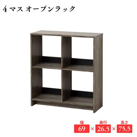 4マス オープンラック 木製 シェルフ 収納棚 幅60cm 組立簡単 おしゃれ 北欧風 モダン リビング収納