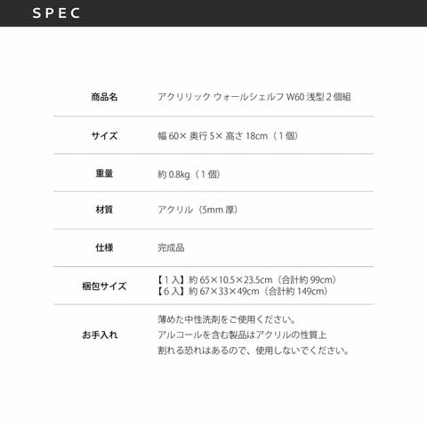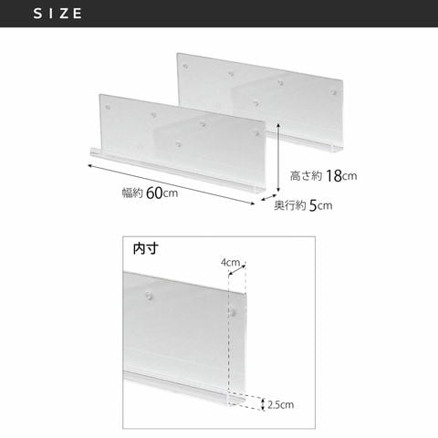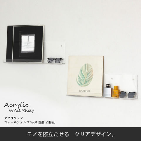 品番:23406※品名:【浅型2個組】アクリルウォールシェルフ 透明 壁掛けラック 壁面収納 棚 壁掛け棚 おしゃれ 軽量 取り付け簡単 ディスプレイラック