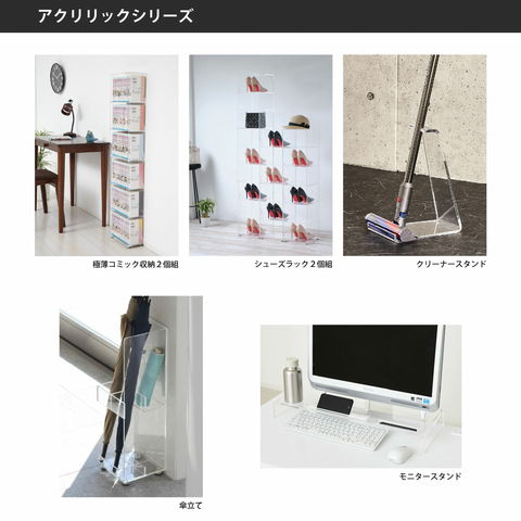 ■サイズ 幅38×奥行5×高さ18cm(1ヶ) 幅60×奥行5×高さ18cm(1ヶ) 幅38×奥行14×高さ18cm(1ヶ) 幅60×奥行14×高さ18cm(1ヶ) ■重量 約0.5kg(1ヶ) 約0.8kg(1ヶ) 約1.1kg(1ヶ) 約1.7kg(1ヶ) ■材質 アクリル ■生産国 中国 ※完成品 |