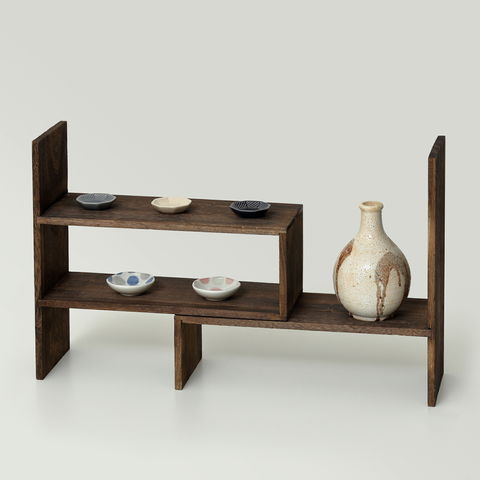 ?吸湿性・調湿性があるとされる桐材を使用しています。 ?趣を出すため、表面を火で焦がし模様のように木目を出した焼桐仕上げです。 ?焼桐の表面は変色しにくく、汚れが目立ちにくいです。 ?設置場所に合わせて自由に幅を変えられます。 ?L字型にして、コーナーラックとしてもお使いいただけます。 ?お気に入りの小物などをお洒落にディスプレイ。 ?軽量ですので、移動や設置が簡単です。 ?箱から出してすぐに使える完成品です。 ?和室はもちろん洋室にも馴染むシンプルデザインです。 ?コンパクトサイズですので、圧迫感なく場所を選ばずお使いいただけます。 |