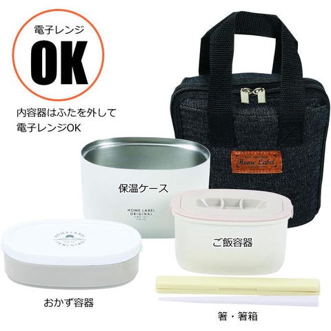 品番:P01-1-60-HB-5445※品名:ステンレス製ランチジャー お弁当箱 ランチジャー 保温 レンジ対応 子供 大人 丼 ステンレス ごはん おかず セット バッグ付き 箸付き