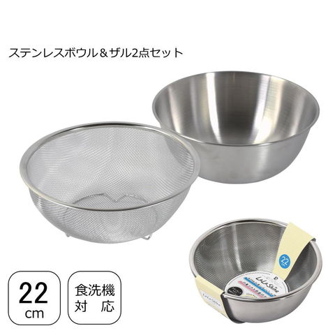 | キッチン調理用品 ステンレス製 ボウル ザル メッシュザル セット 22cm |