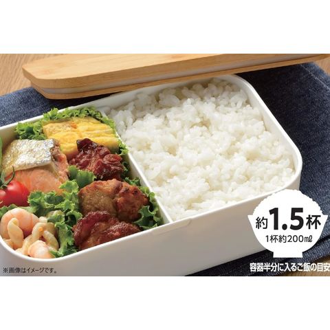 | ランチグッズをおしゃれにコーディネート! ナチュラルな風合いの竹製蓋ランチボックス パッキン付の竹製蓋です 容器半分に入るご飯の目安 約1.5杯(1杯約200ml) |
