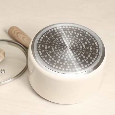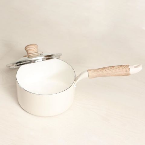 白いセラミック 片手鍋 18cm 深型 ガラス蓋付き IH対応 ガス対応 軽量 ノンスティック 内面セラミック加工 こびり付きにくい おしゃれ 北欧風 ホワイト 鍋 ミルクパン スープ鍋 煮物用 調理器具 キッチン用品 新生活 ギフト プレゼント PFOAフリー PTFEフリー