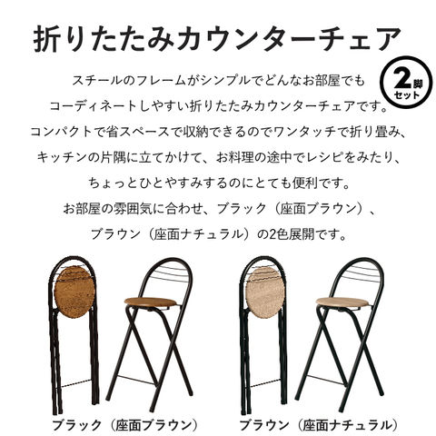 品番:K02-1-140-CT-C2-2PBR※品名:カウンターチェア 2脚セット 折りたたみ 背もたれ付き フォールディングチェア バーチェア ハイチェア カウンター チェア 折りたたみ椅子 座面高 60cm 大人 キッチン 家具 おしゃれ ハイスツール