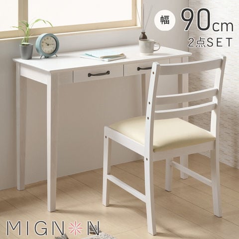 品番:K02-1-160-160-MIGNON-D90-C41※品名:デスク チェア セット 一人暮らし ホワイト家具 白い家具 机 椅子 ワークデスク パソコンデスク デスク I字 学習机 勉強机 オフィスデスク 学習デスク テーブル リビングテーブル 木製 おしゃれ かわいい 新生活