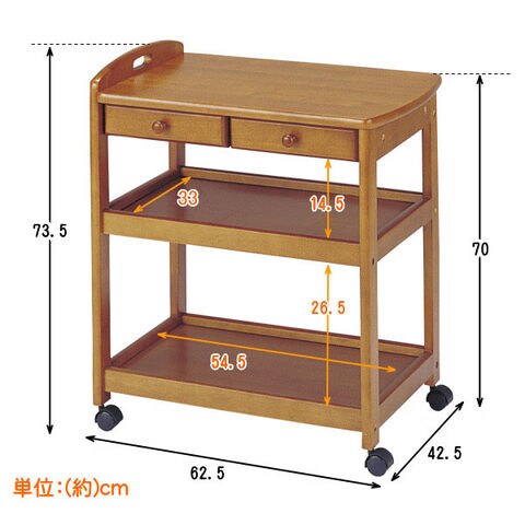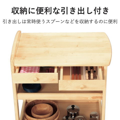 | 仕 様 | 引出しには常時使うスプーンなどの収納に便利です。 キャスター付 |