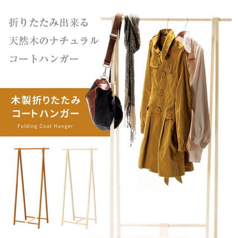 ハンガーラック 木製 スリム 折りたたみ おしゃれ コートハンガー 玄関 省スペース 北欧 アンティーク 洋服掛け 折り畳み フォールディング シンプル 木 一人暮らし 新生活 天然木 ラバーウッド ブラウン ナチュラル
