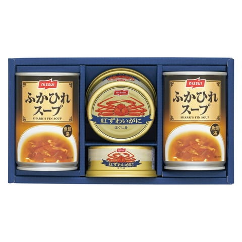 春の贈り物便り かに缶詰・ふかひれスープ缶詰ギフトセット ニッスイ セット内容/紅ずわいがにほぐし身(55g)・ふかひれスープ(285g)×各2