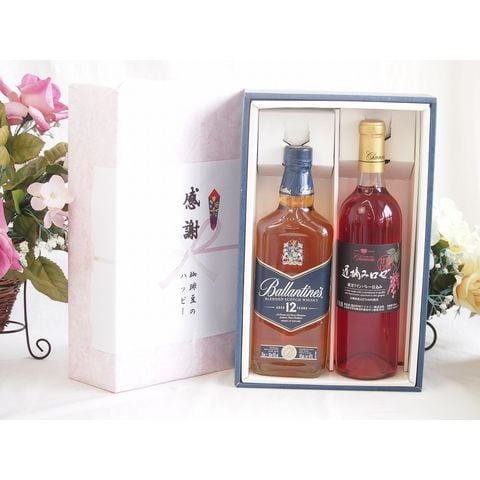 実りの秋の贈り物 感謝の贈り物ボックスバランタイン12年ウイスキーと国産ワインセット(遅摘みロゼ 完熟甘口ワイン 甘口(山梨県)720mlバランタイン 12年(スコットランド) 700ml