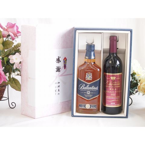 実りの秋の贈り物 感謝の贈り物ボックスバランタイン12年ウイスキーと国産ワインセット(樽熟成穂坂マスカットベーリーA赤ワイン ミディアム(山梨県)750mlバランタイン 12年(スコットランド) 700ml