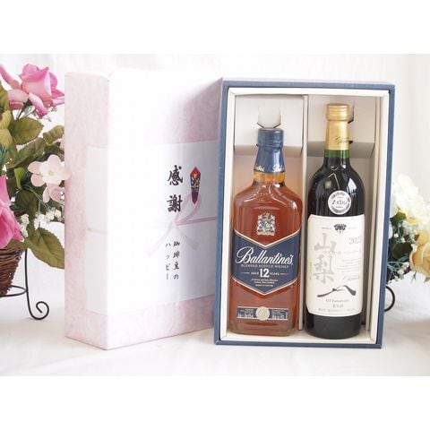 実りの秋の贈り物 感謝の贈り物ボックスバランタイン12年ウイスキーと国産ワインセット(山梨 マスカットベーリーA 赤ワイン 重口(山梨県)750mlバランタイン 12年(スコットランド) 700ml