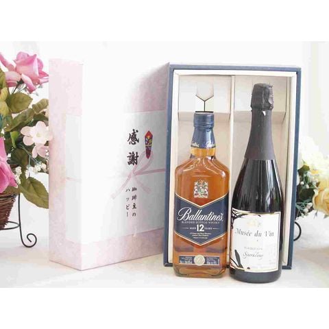 実りの秋の贈り物 感謝の贈り物ボックスバランタイン12年ウイスキーと国産ワインセット(MdV オアシス ブラッククイーン白スパークリングワイン辛口(長野県)750mlバランタイン 12年(スコットランド) 700ml