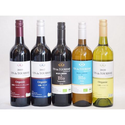 有機ワイン5本セット(アイレン種ヴァンドゥツーリズム辛口(スペイン) ヴァン ドゥ ツーリズム カベルネソーヴィニヨン ミディアム(オーストラリア) ヴァン ドゥ ツーリズム シャルドネ辛口(オーストラリア) ヴァン ドゥ ツーリズム シラーズ ミディア