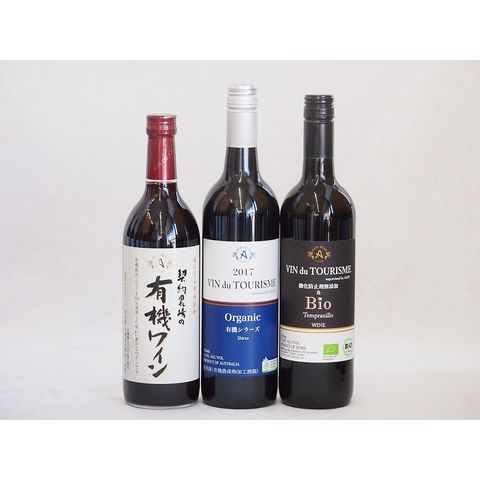 有機ワイン3本セット(コンコード種赤ワインやや甘口 ヴァン ドゥ ツーリズム シラーズ ミディアム(オーストラリア) テンプラリーニョ種ヴァンドゥツーリズム辛口(スペイン)) 720ml×1本 750ml×2本