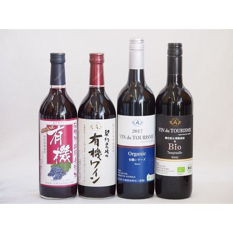有機ワイン4本セット(あずさ赤ワイン中口 コンコード種赤ワインやや甘口 ヴァン ドゥ ツーリズム シラーズ ミディアム(オーストラリア) テンプラリーニョ種ヴァンドゥツーリズム辛口(スペイン)) 720ml×2本 750ml×2本