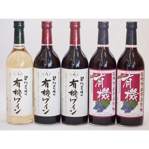 有機ワイン5本セット(あずさ赤ワイン中口 コンコード種赤ワインやや甘口 ナイアガラ種白ワインやや甘口) 720ml×5本