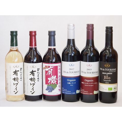 有機ワイン6本セット(あずさ赤ワイン中口 コンコード種赤ワインやや甘口 ナイアガラ種白ワインやや甘口 ヴァン ドゥ ツーリズム カベルネソーヴィニヨン ミディアム(オーストラリア) ヴァン ドゥ ツーリズム シラーズ ミディアム(オーストラリア) テンプ