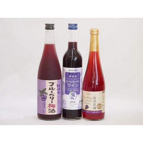 リキュール特集3本セット(スパークリング信州巨峰 グレープ&ブルーベリーワイン 紀州ブルーベリー梅酒) 500ml×2本 720ml×1本