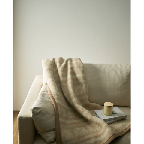 上質なアルパカ素材を使用し、毛布発祥の地である大阪泉州・泉大津で、丁寧に織り上げました。長年の経験と知恵により培われた毛布作りの匠の技が生かされた逸品です。