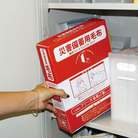 A4ファイルサイズケースなので書棚・引出しなど身近な場所に無理なく保管できるだけでなく、いざという時にすぐに取り出せます。「防炎性能試験」に適合し認定を受けたフリース難燃毛布を長期保管に欠かせない独自の水分除去技術で除湿処理をし、コンパクトな真空パックにしました。(処理・包装ともにISO14000・9000取得 日本国内工場で対応)