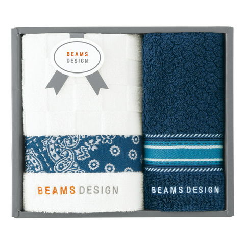 春の贈り物便り フェイスタオル&タオルハンカチ BEAMS DESIGN ネイビーブルー フェイスタオル:34×70cm、タオルハンカチ:25×25cm