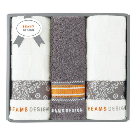 春の贈り物便り フェイスタオル2P&タオルハンカチ BEAMS DESIGN グレー フェイスタオル:34×70cm、タオルハンカチ:25×25cm 0.3kg 綿100%