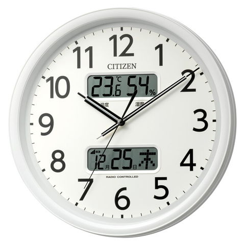 コチコチ音がしない連続秒針の液晶表示付電波掛時計です。大きな文字板で、時間も温湿度もカレンダーも見やすくなっています。