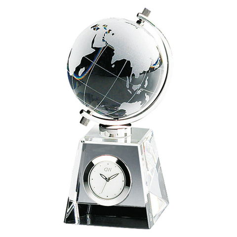コンパクトで高級感あふれるデスククロック。創立や周年記等のギフトに最適。世界を相手に活躍するイメージ。精巧な細工で表現された地球は、回転します。