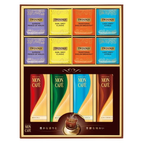 豊かな味と香りの<モンカフェ>と気品溢れる英国紅茶の<トワイニング>をひとつにした、どなたにも喜ばれるお薦めのギフトです。こだわりの味わいをいつでもどこでも、シーンに合わせてお楽しみいただけます。