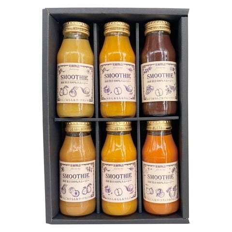 春の贈り物便り 国産果汁のフルーツスムージー6本セット 果樹物語 みかん&もも&りんご(180ml)×2、りんご&もも&ラフランス・りんご&すもも&ラフランス・にんじん&ラフランス&りんご・ぶどう&りんご&ブルーベリー(各180ml)×各1