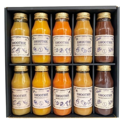 春の贈り物便り 国産果汁のフルーツスムージー10本セット 果樹物語 りんご&もも&ラフランス・みかん&もも&りんご・にんじん&ラフランス&りんご・りんご&すもも&ラフランス・ぶどう&りんご&ブルーベリー(各180ml)×各2