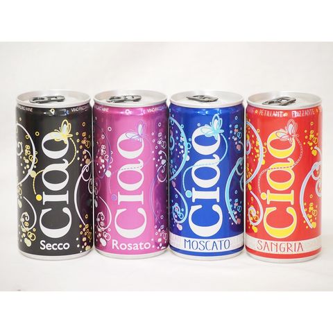 飲みきりイタリアワイン缶4本セット(チャオ サングリア やや甘口微発泡赤ワイン チャオ モスカート 甘口微発泡白ワイン チャオ ビアンコ 辛口微発泡白ワイン チャオ ロザート やや辛口微発泡ロゼワイン) 200ml×4本