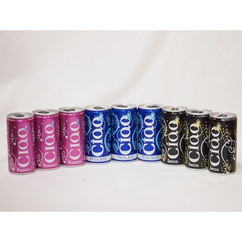 飲みきりイタリアワイン缶9本セット(チャオ モスカート 甘口微発泡白ワイン チャオ ビアンコ 辛口微発泡白ワイン チャオ ロザート やや辛口微発泡ロゼワイン) 200ml×9本