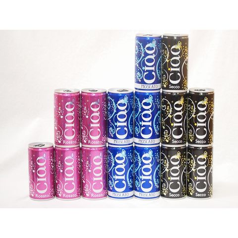 飲みきりイタリアワイン缶15本セット(チャオ モスカート 甘口微発泡白ワイン チャオ ビアンコ 辛口微発泡白ワイン チャオ ロザート やや辛口微発泡ロゼワイン) 200ml×15本