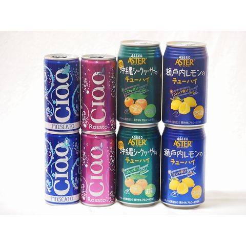 飲みきりイタリアワイン缶8本セット(イタリアチャオ モスカート 甘口微発泡白ワイン イタリアチャオ ロザート やや辛口微発泡ロゼワイン ストレート果汁瀬戸内レモンのチューハイ ストレート果汁完熟沖縄シークヮーサーのチューハイ) 300ml×4本 350ml×4本