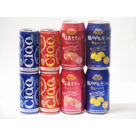こだわりの缶ワインと缶チューハイ8本セット(イタリアチャオ サングリア やや甘口微発泡赤ワイン イタリアチャオ モスカート 甘口微発泡白ワイン ストレート果汁瀬戸内レモンのチューハイ ストレート混濁果汁福島もものチューハイ) 300ml×4本 350ml×4本