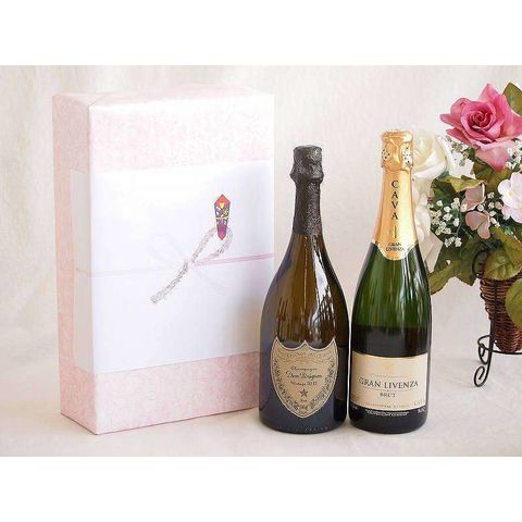 正規ドンペリニヨン白ギフトボックス2本セット シャンパンドンペリニヨン白(フランス)750mlスパークリング白ワイングラン リベンサ ブリュット(スペイン)750ml