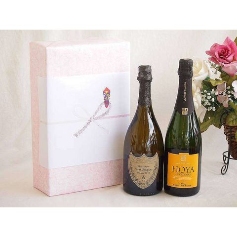 正規ドンペリニヨン白ギフトボックス2本セット シャンパンドンペリニヨン白(フランス)750mlスパークリング白ワインオヤ デ カデナス カバ ブリュット ナトゥーレ(スペイン)750ml