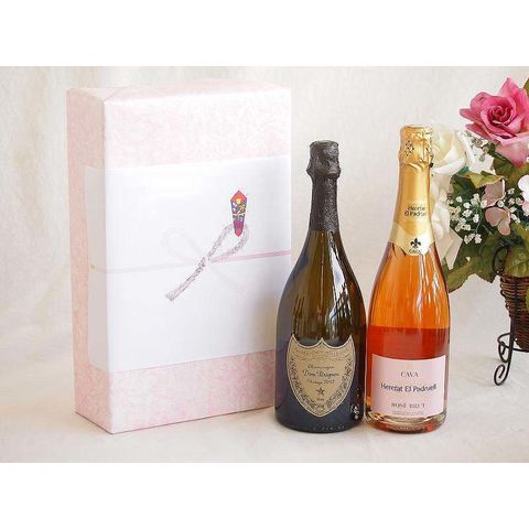 正規ドンペリニヨン白ギフトボックス2本セット シャンパンドンペリニヨン白(フランス)750mlスパークリングロゼワインエレタット エルパドゥエル ブリュット ロゼ(スペイン)750ml